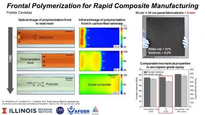 Here's Centellas' slide on rapid composite manufacturing. Interestingly, the 30 cm ✕ 30 cm panel in her research fabricated in under 5 minutes -- the same amount of time she was given to talk about it in last week's competition.
